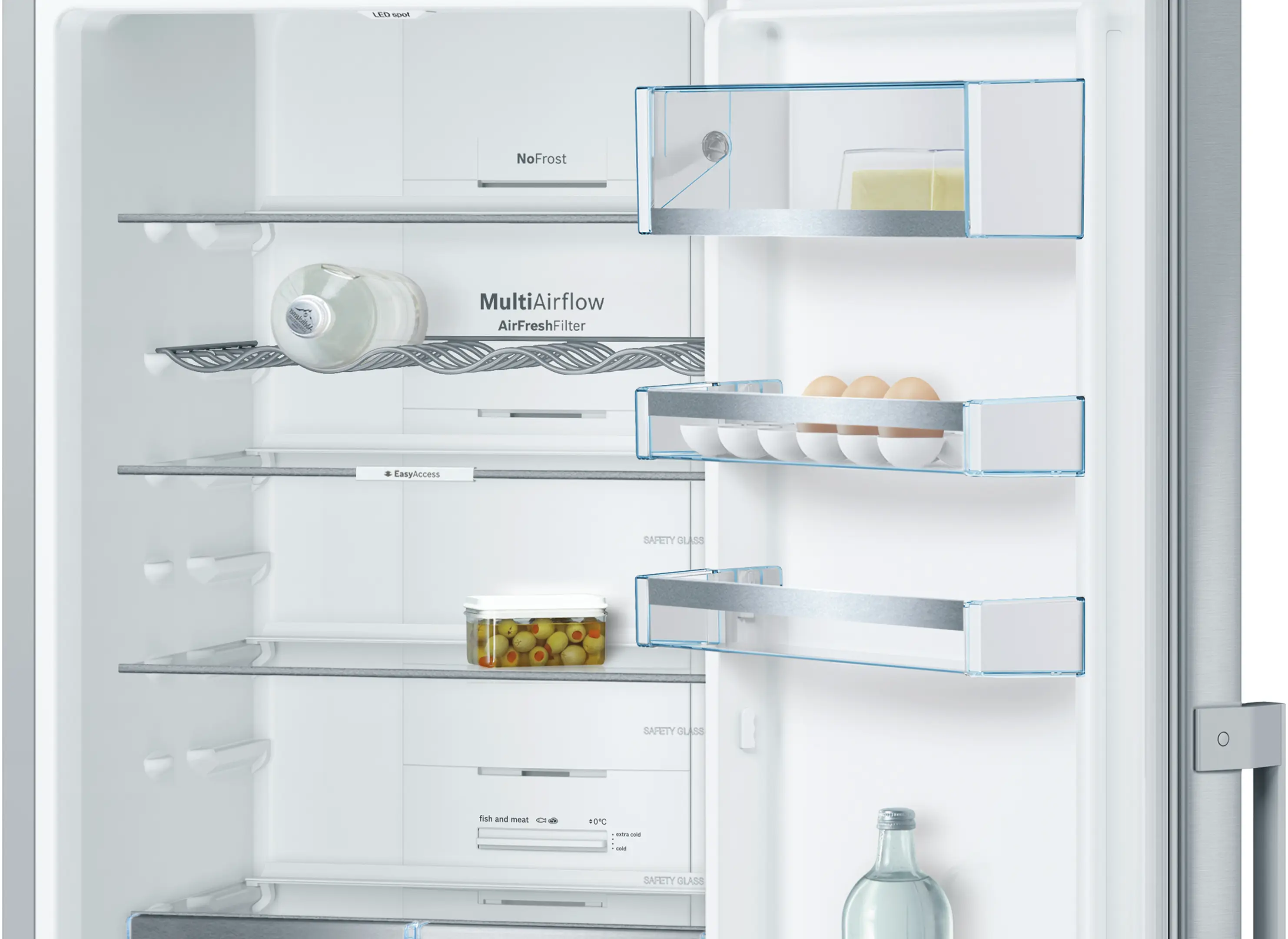 Półki EasyAccess Shelf: wyciągane, szklane półki umożliwiają lepszy dostęp do zawartości lodówki.