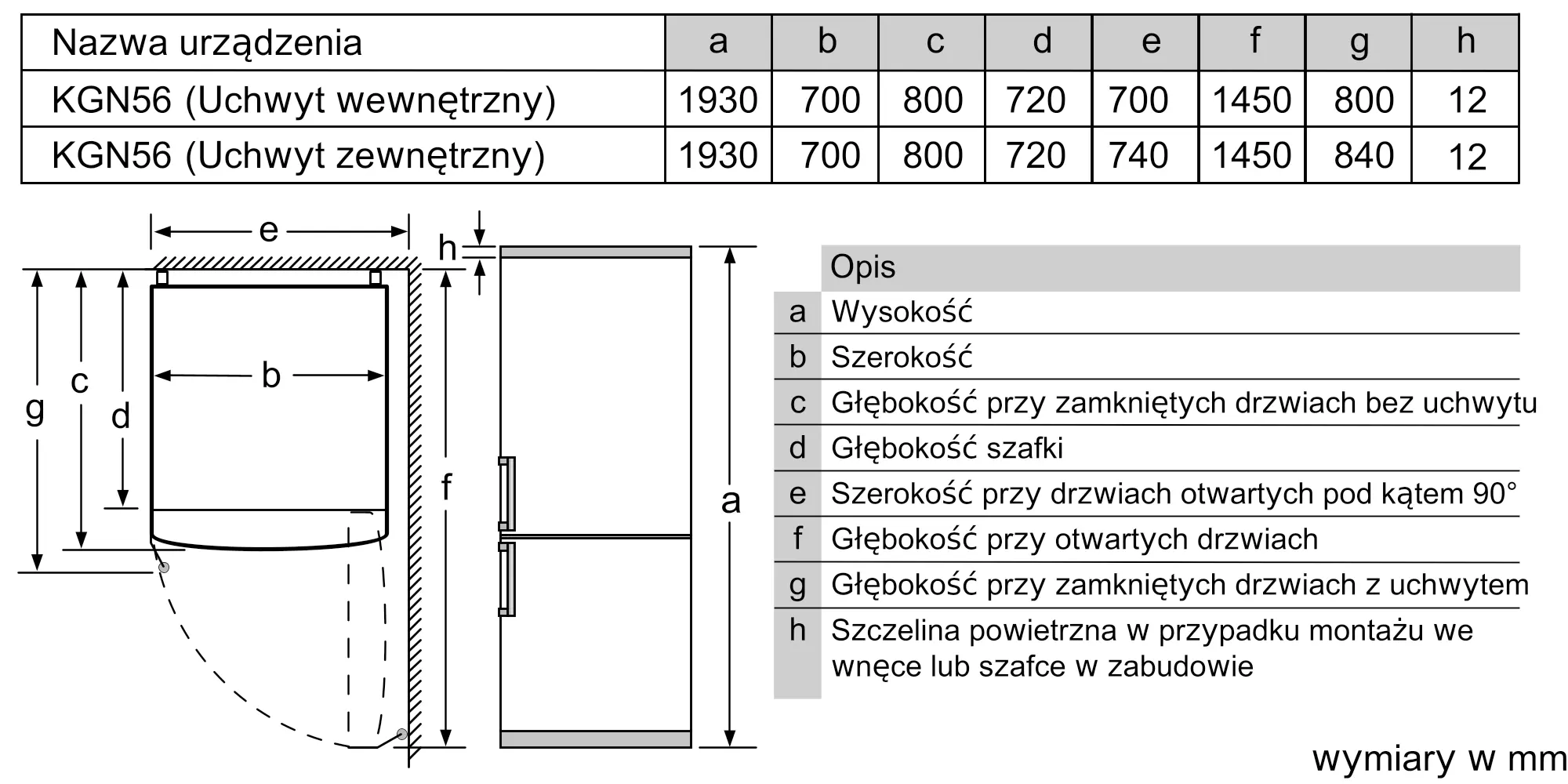 Wymiary urządzenia