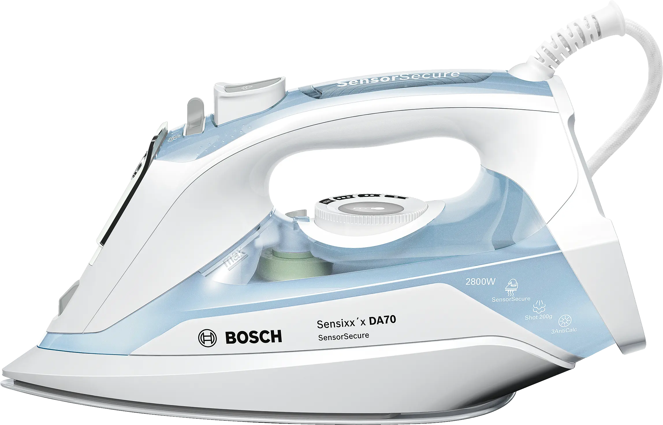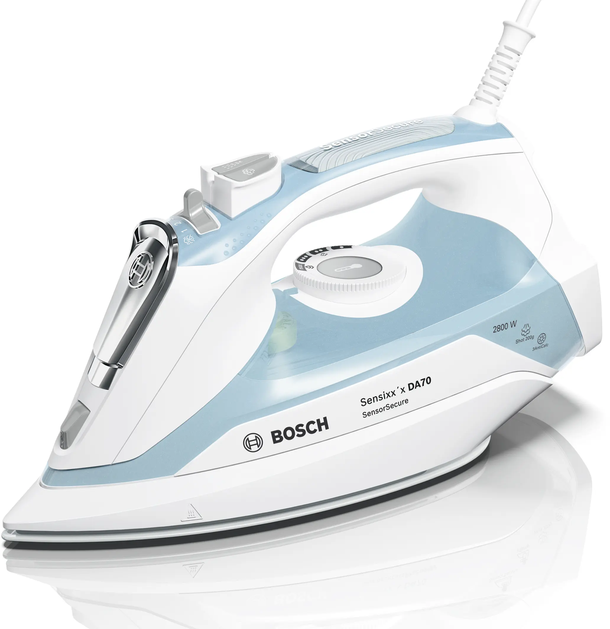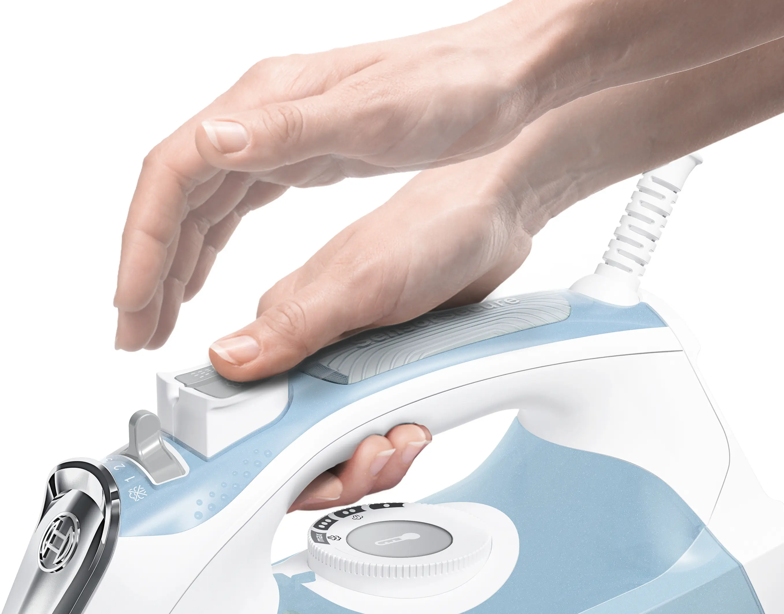 SensorSecure: automatyczne wyłączanie urządzenia po zdjęciu ręki z uchwytu żelazka oraz szybkie nagrzewanie po ponownym dotknięciu uchwytu.
