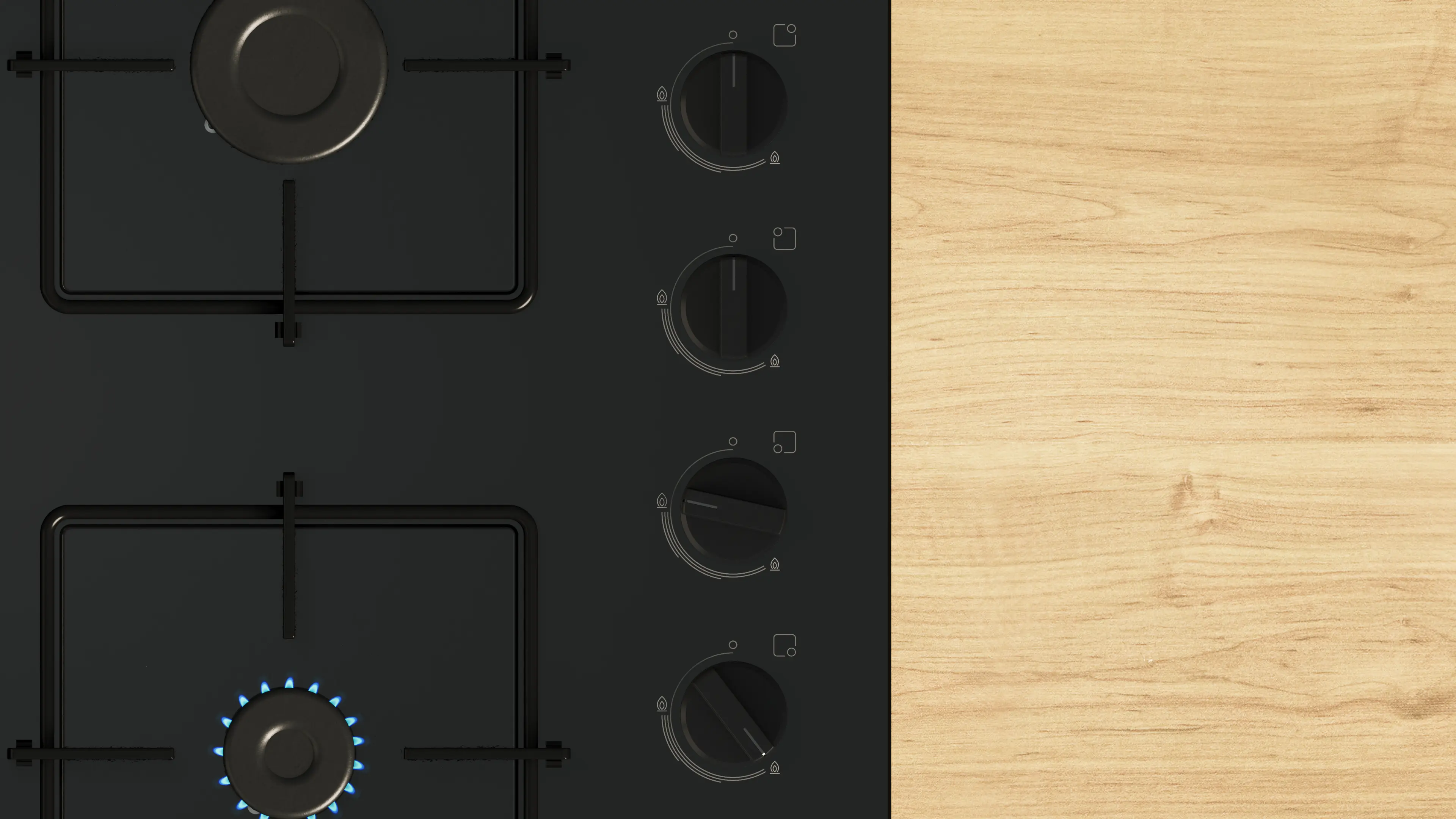 Serie 2 Płyta gazowa 60 cm Szkło hartowane, CzarnyPOH6B6K30