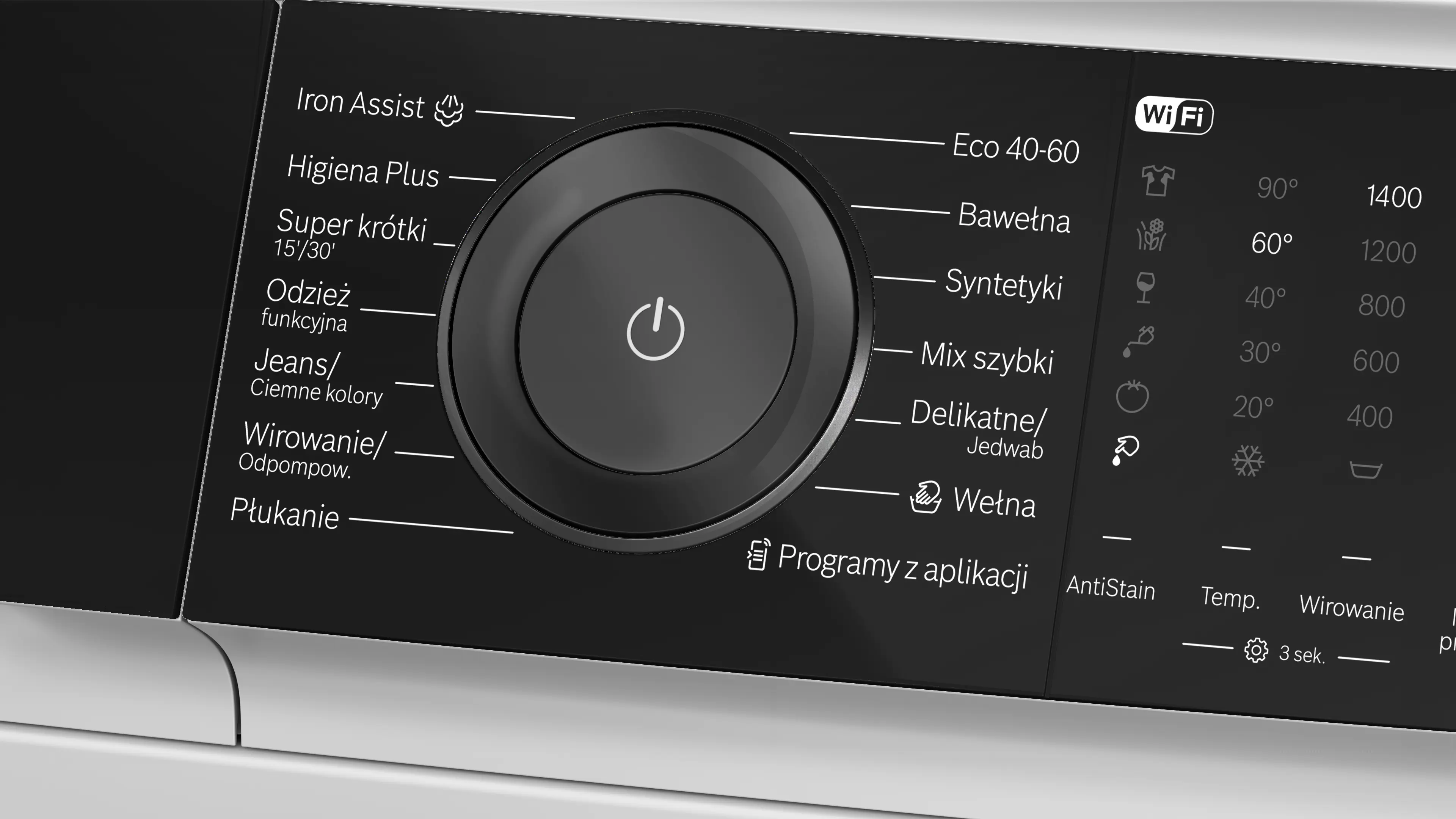 Maksymalna liczba obrotówPrzypis 1: Maksymalna prędkość wirowania zostaje automatycznie zmniejszona w przypadku wykrycia nierównomiernego rozłożenia prania.: 1400 obr./min