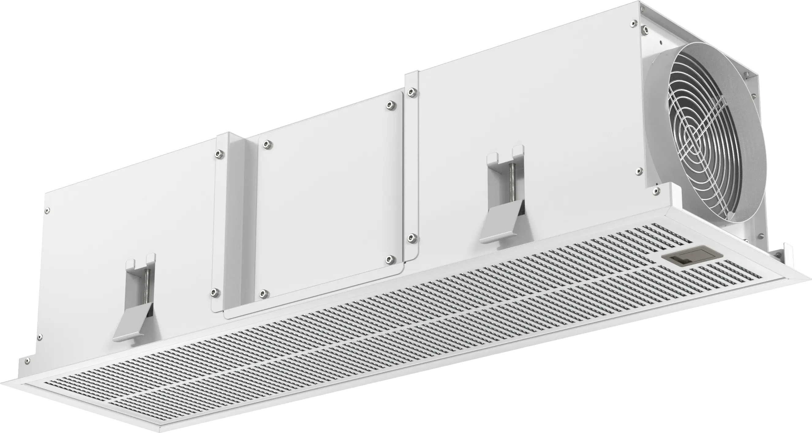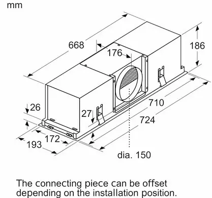 W przypadku płaskiego okapu sufitowego z prostokątnym wylotem powietrza wywiewnego wymagana jest przejściówka z płaskiego (okap sufitowy) na okrągłą (moduł recyrkulacji)