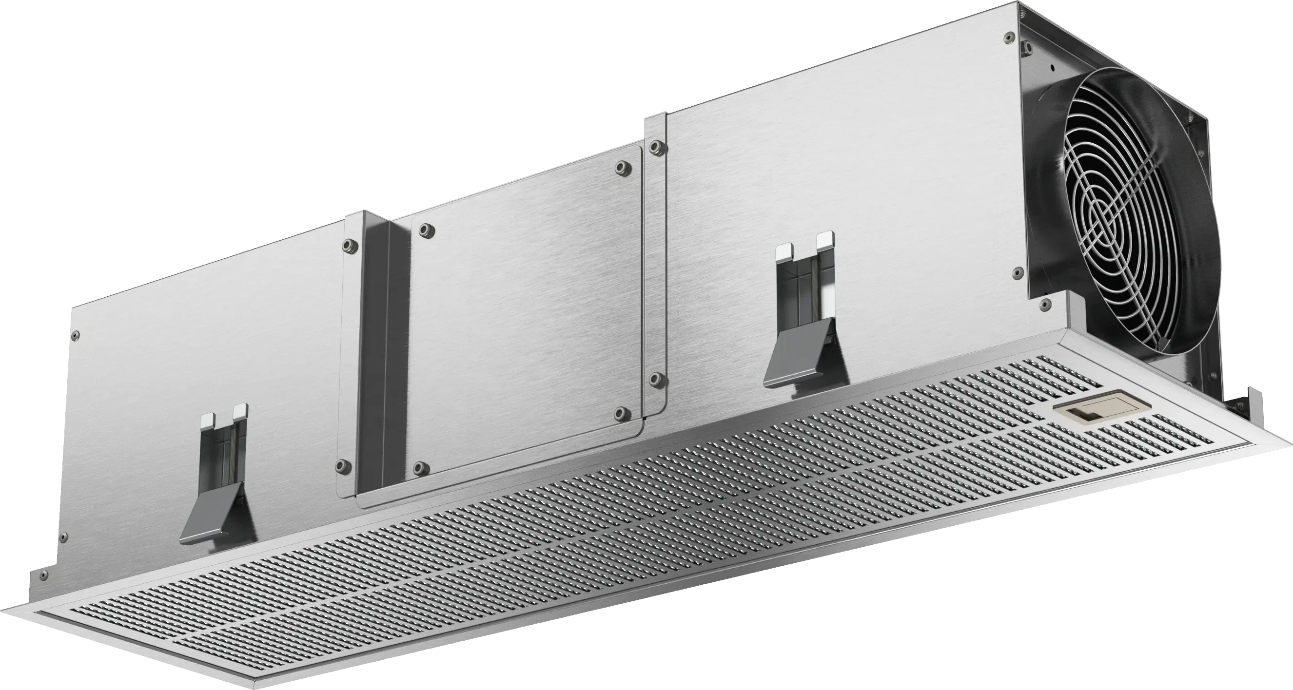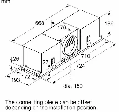 W przypadku płaskiego okapu sufitowego z prostokątnym wylotem powietrza wywiewnego wymagana jest przejściówka z płaskiego (okap sufitowy) na okrągłą (moduł recyrkulacji)